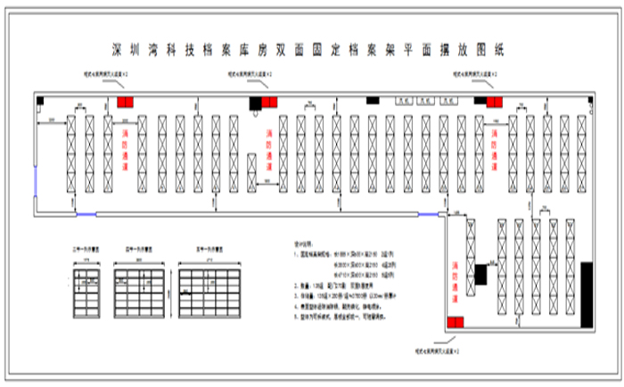 根據(jù)現(xiàn)場(chǎng)測(cè)量的圖紙以及和客戶(hù)深入溝通后,我們按照與客戶(hù)現(xiàn)場(chǎng)溝通、并且大致確定了檔案庫(kù)房的擺放思路。