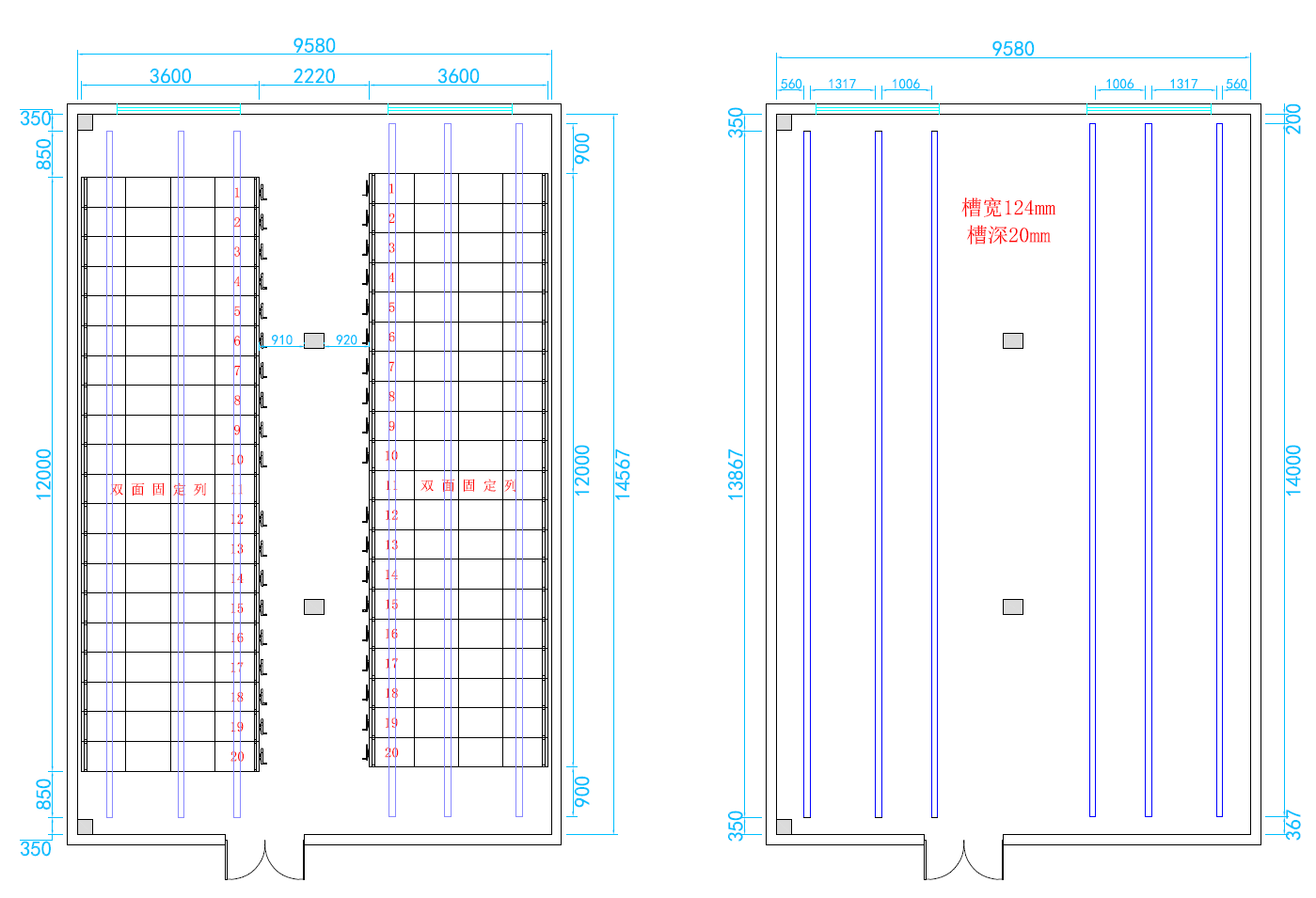 檔案室在一樓,是由2個同樣大小的檔案室作為檔案密集架設(shè)計空間,檔案室內(nèi)部結(jié)構(gòu)相對簡單,只有一側(cè)墻面有電閘和承重柱;與客戶面對面交流一段時間后,當(dāng)天就設(shè)計出擺放方案給到了客戶。